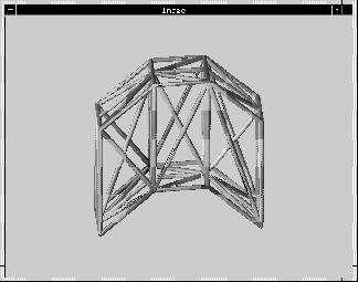 The example file (in /usr/local/dx/samples/data/deformedregular.dx) defines a warped regular grid and shows how to imbed data as text in a header section. The values of the "positions" component are irregular and must be enumerated. Figure 88 shows the resulting structure.